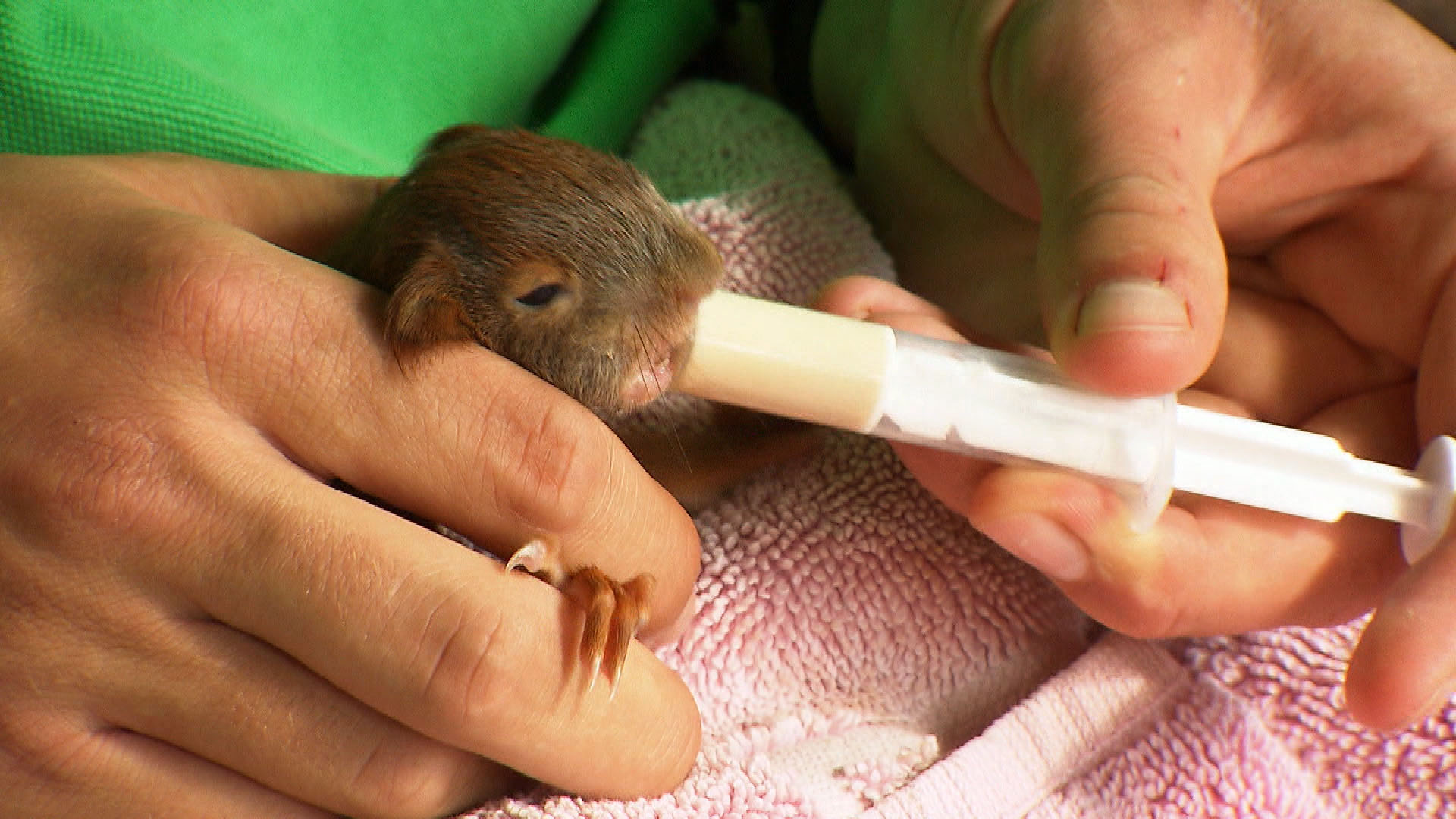 Neu in der WG sind die stacheligen Babys. Im Spätsommer werden fast täglich Igel abgegeben. Praktikantin Miriam, gerade 20 Jahre alt, ist über Nacht fünffache „Pflegemutter“ geworden. Alle zwei bis drei Stunden muss sie nun das Fläschchen geben. Die jüngsten Stationsbewohner brauchen viel Zuneigung.