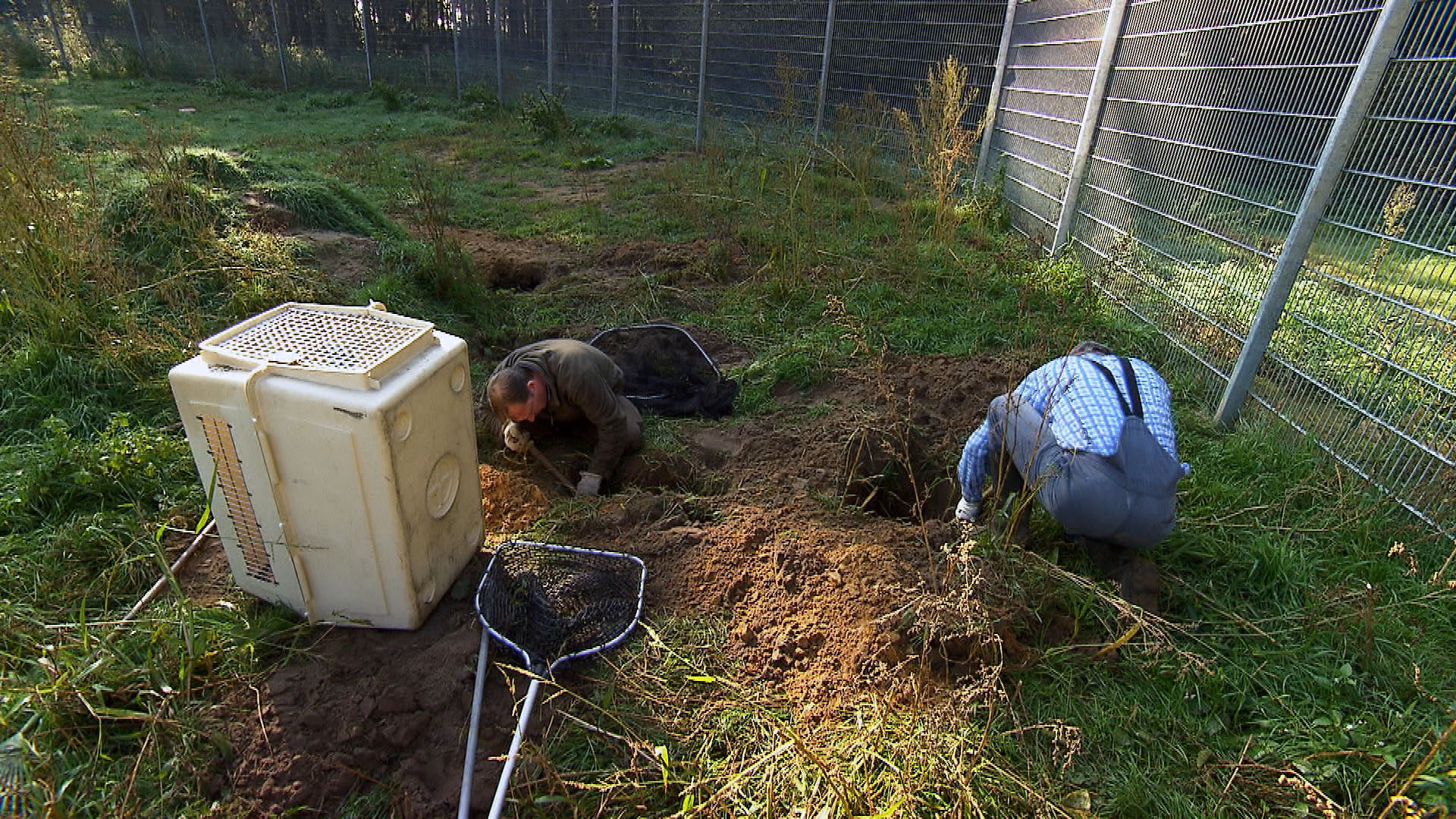 Auch die Füchse sollen ausgewildert werden. Hausmeister Bernd und Fuchsexperte Ralf wollen es ganz clever angehen: eine Fuchsfalle soll helfen. Doch die beiden haben die sieben kleinen Füchse unterschätzt: Einer nach dem anderen taucht ab und versteckt sich im Fuchsbau. Bernd und Ralf müssen buddeln.